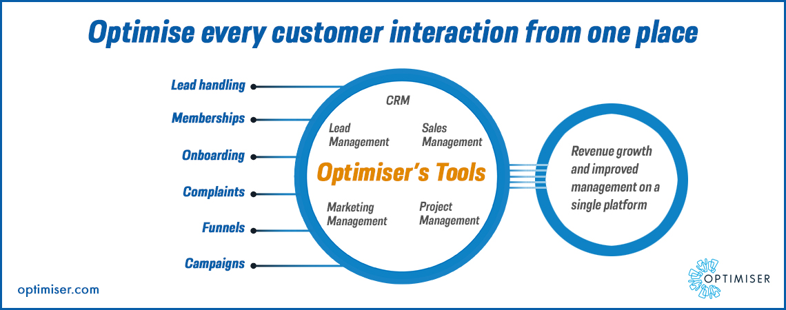 Optimiser is a comprehensive CRM software company, providing businesses a customisable solution to their personal goals for sales, productivity, and growth. Powerful integrated modules include lead management software, a B2B sales toolkit, automated marketing suite and more for sale under a single subscription. Try Optimiser’s CRM software demo with access to the full Enterprise Licence FREE for 30 days, and find out how you can skyrocket productivity in just one month!